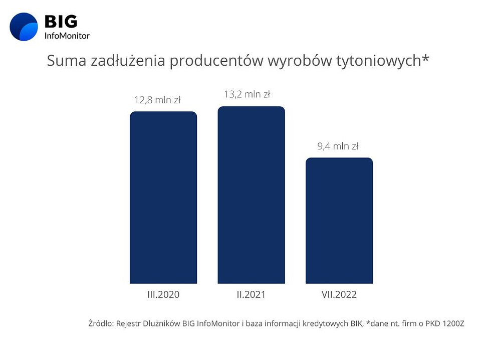 Branża tytoniowa i alkoholowa zmniejsza zaległości, a jeszcze na początku tego roku, w obliczu rosnącej inflacji i wojny w Ukrainie, Polacy deklarowali chęć zmniejszenia wydatków na używki, w tym alkohol i wyroby tytoniowe. Najnowsze dane z Rejestru Dłużników BIG InfoMonitor wskazują jednak zupełnie inny kierunek. Podmioty z branży tytoniowej i alkoholowej od ponad roku utrzymują zdecydowany spadek przeterminowanego zadłużenia - z około 105,4 mln w 2021 roku do prawie 64,4 mln aktualnie. Towarzyszy temu ponadprzeciętny, bo 70-proc., wzrost liczby aktywnych firm zajmujących się produkcją i przetwórstwem surowca tytoniowego, a w przypadku branży alkoholowej 30-proc. Polacy nadal wydają pieniądze na używki, a wysoki poziom stresu związany z podwyżkami cen w sklepach czy rosnącymi ratami kredytów nie sprzyja zmianom nawyków.