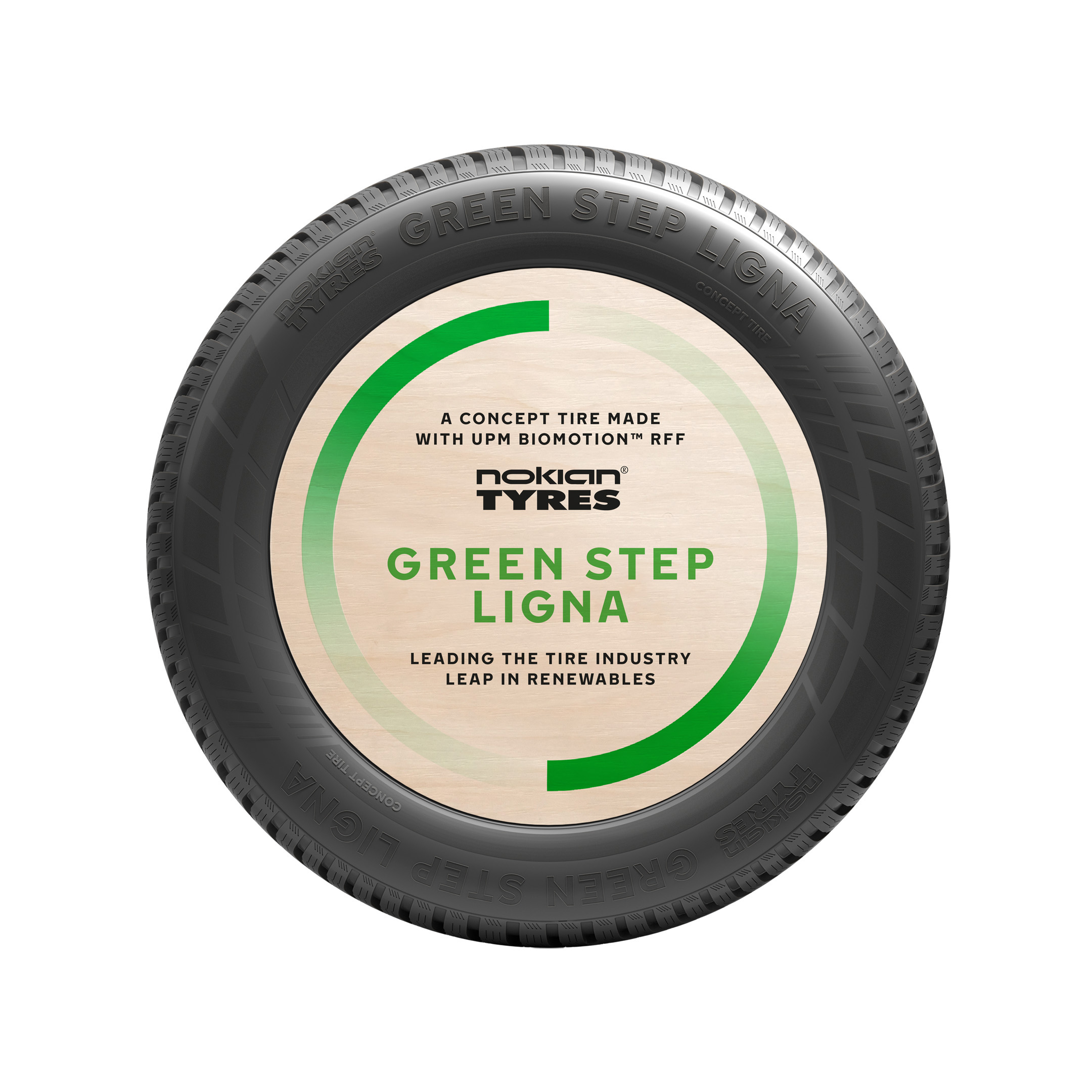 Opona koncepcyjna Nokian Tyres Green Step Ligna jest pierwszą w historii oponą wykonaną z UPM BioMotion™ RFF, w pełni odnawialnego surowca ligninowego na bazie drewna produkowanego przez UPM. W oponie koncepcyjnej cała sadza kopalna w ścianach bocznych zastąpiona została nowym surowcem.