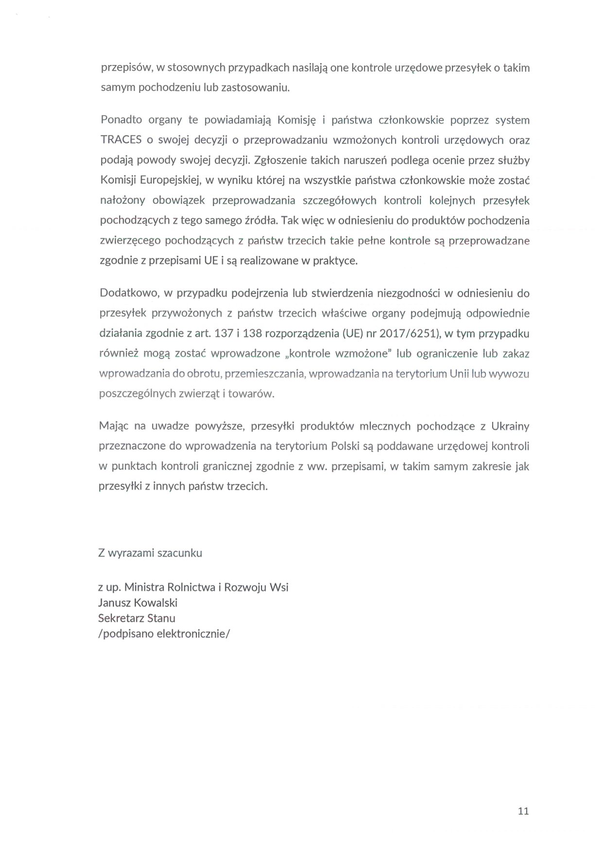 Poniżej i w załączeniu pełna treść odpowiedzi minrol na zgłaszane postulaty mleczarzy.