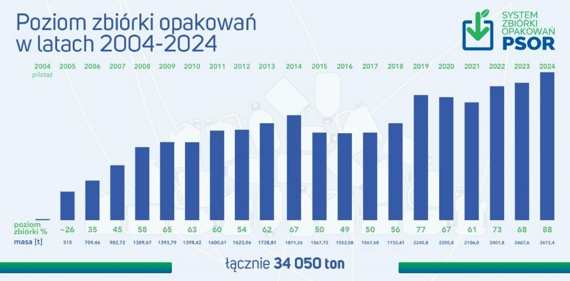 Osiągnięcie tak wysokiego poziomu zbiórki i recyklingu w 2024 roku to wynik konsekwentnej pracy tysięcy uczestników systemu. Polska, dzięki Systemowi PSOR, znalazła się w europejskiej czołówce w zakresie odpowiedzialnego gospodarowania opakowaniami, pokazując, że zrównoważony rozwój w rolnictwie to nie tylko idea – to praktyka, którą można skutecznie realizować na szeroką skalę. Dziś System PSOR to dojrzały i kompleksowo funkcjonujący system realizujący założenia GOZ i ROP w Polsce. O skuteczności Systemu świadczą twarde dane: łącznie od 2004 roku zebrano już 34,05 tys. ton opakowań, a z każdym rokiem rośnie zarówno wolumen zbiórki, jak i jej efektywność środowiskowa.