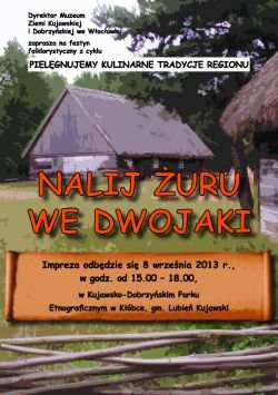 Muzeum Ziemi Kujawskiej i Dobrzyńskiej we Włocławku w niedzielę 8 września na terenie Kujawsko-Dobrzyńskiego Parku Etnograficznego w Kłóbce organizuje festyn festyn folklorystyczny z cyklu „Pielęgnujemy kulinarne tradycje regionu” pt. „Nalij żuru we dwojaki”.