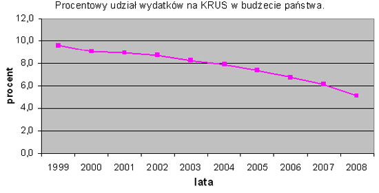 Trwała jest także tendencja zmniejszania się udziału tych środków w ogóle wydatków na rolnictwo. Rok 2008 przyniesie pod tym względem dalszy spadek, ponieważ wydatki na świadczenia wypłacane z KRUS stanowić będą ok. 5 proc. ogółu projektowanych wydatków z budżetu państwa. Skala udziału tych środków w FER w dużym stopniu ma swoje uzasadnienie w niekorzystnej - dla każdego zresztą systemu emerytalnego - sytuacji demograficznej wsi. Na koniec ub.r. liczba świadczeniobiorców KRUS zmalała w stosunku do początku roku o ok. 100 tys. i niemal zrównała się z liczbą ok. 1,5 mln ubezpieczonych czynnych zawodowo rolników. Natomiast w systemach pozarolniczych liczba ubezpieczonych jest dwukrotnie większa od liczby osób pobierających emerytury i renty. Tendencję rosnąca wykazują natomiast dotacje celowe dla KRUS na realizację zadań zleconych.